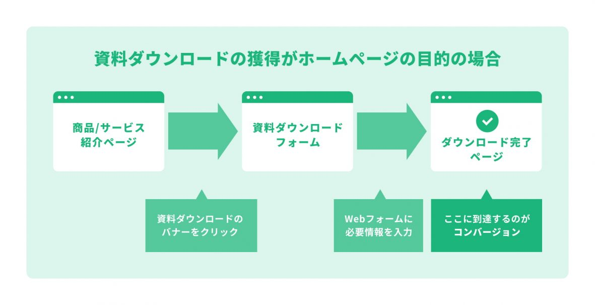また、コーポレートサイトやサービスサイトの場合は「お問い合わせ」や「資料ダウンロード」、「ウェビナー参加申し込み」などが成果とされるケースが多いというように、サイトの役割によって大きく異なります。
