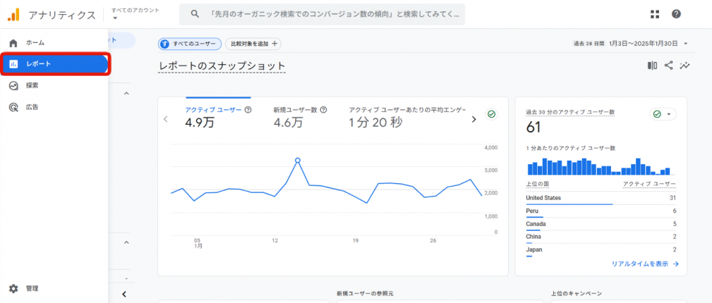 ここでは、離脱数とPV数を確認する手順を解説します。