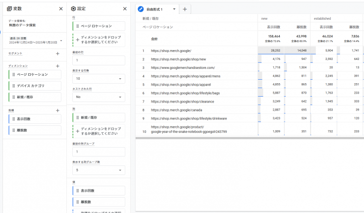 7.上記手順で、ページごとの離脱数を確認が可能に