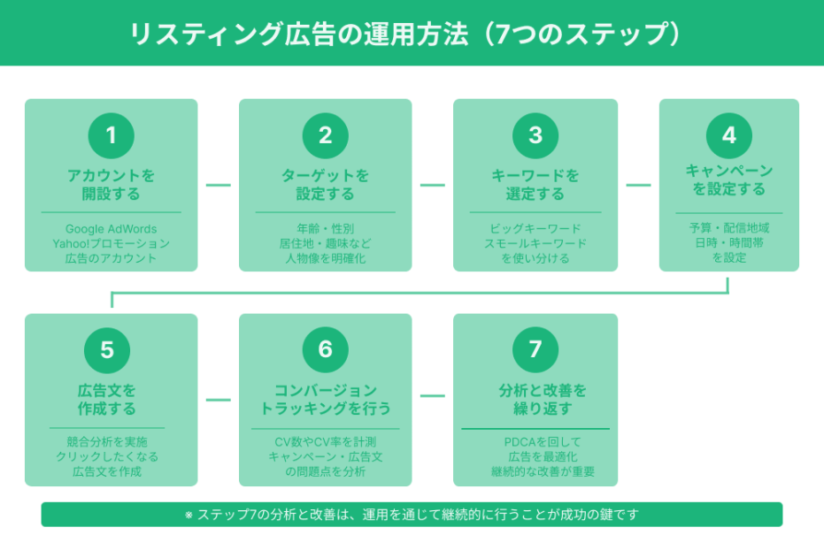 リスティング広告は、分析・改善を繰り返すことで最適化されます。これを疎かにすると、いつまで経っても問題点が改善されず、アクセス数を増やすという目的も達成できません。