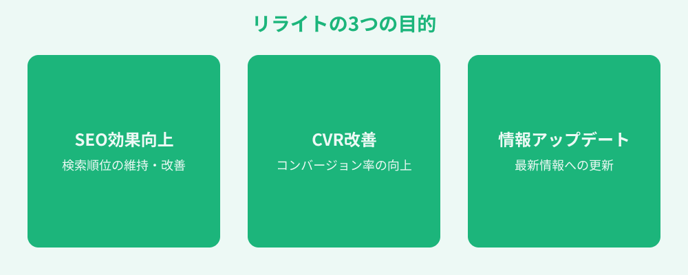 リライトの目的は、記事の価値を最大化し検索順位やコンバージョンを改善することです。