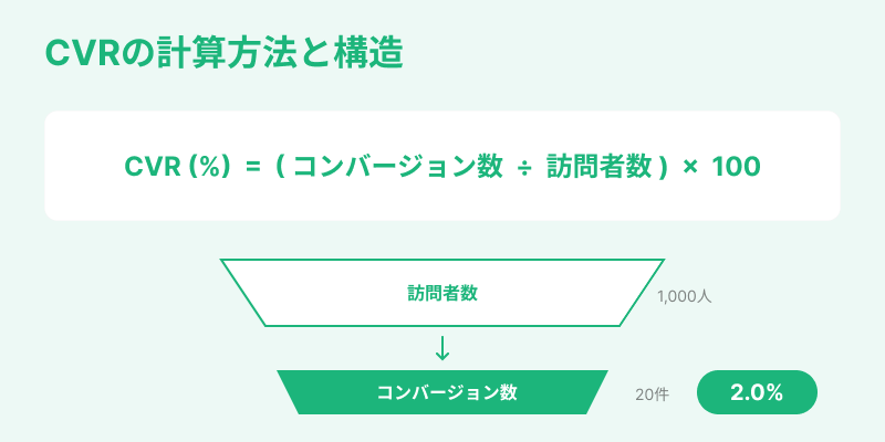 CVRは「コンバージョン数÷訪問者数×100」で求めます。