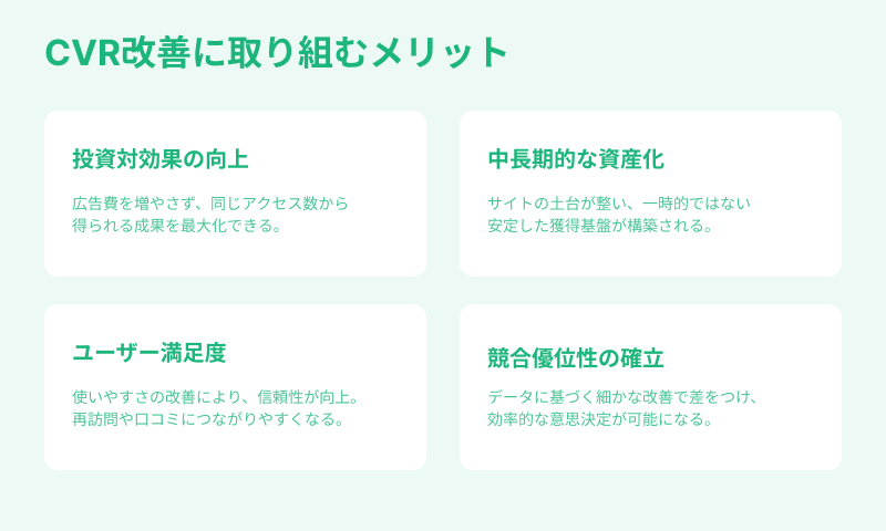 ここからは、CVR改善に取り組む具体的な利点を解説します。