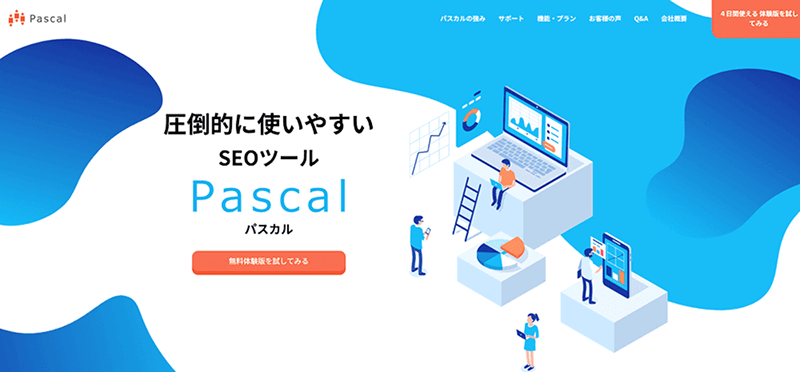 パスカルは、ドメインパワーのチェックはもちろん、簡単な操作で正しいキーワード選定やSEO改善の方向性を把握できるツールです。具体的には、競合が上位表示しているキーワードの確認や、自社コンテンツの改善ポイントを簡単に見つけることができます。