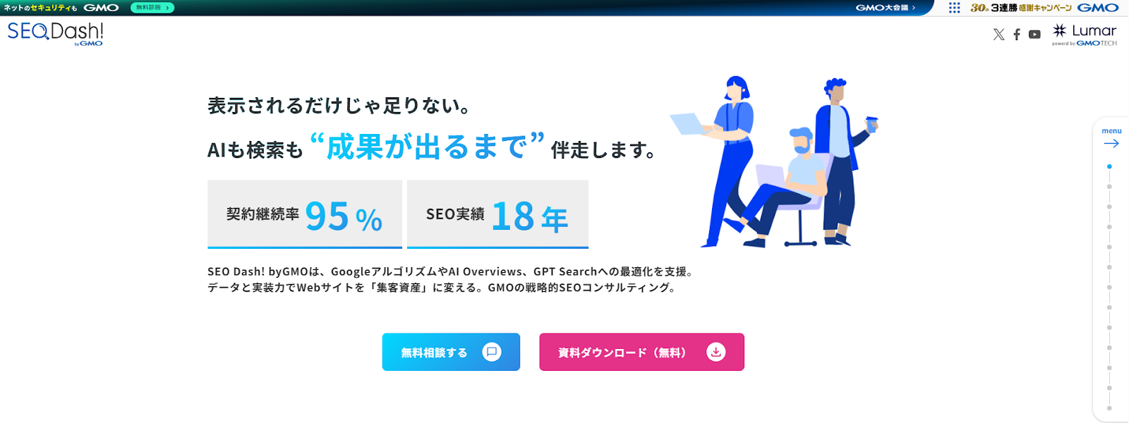 | 実績 | 契約継続率95%、SEO実績18年 |