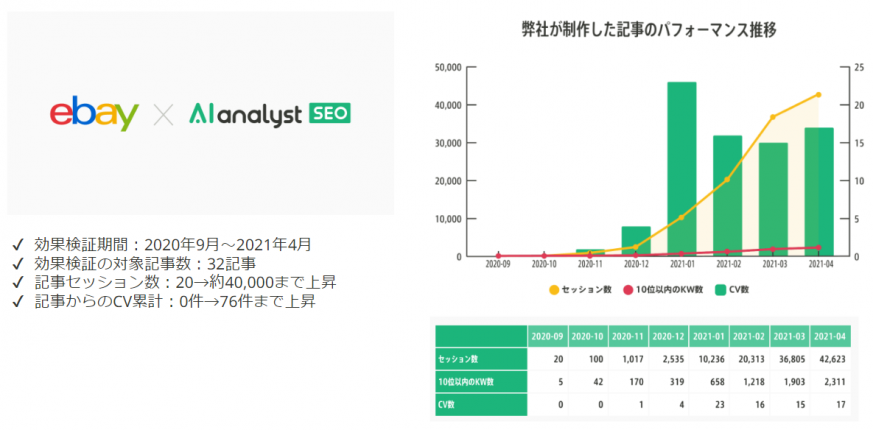 | 実績 | 提供実績7,500記事以上記事のセッション数を20から約4万まで上昇:イーベイ・ジャパン株式会社様 |