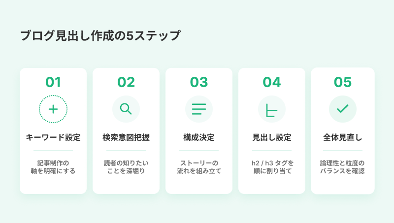 ここからは、ブログの見出しを作成する手順を5つのステップで解説します。