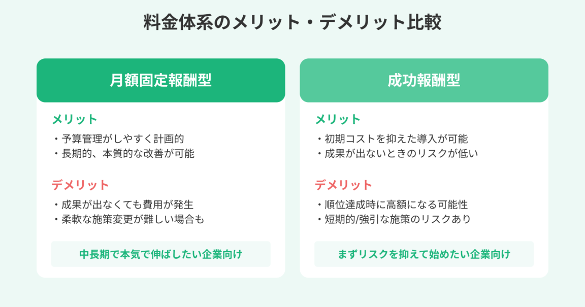 月額固定報酬制と成功報酬型それぞれのメリット・デメリット