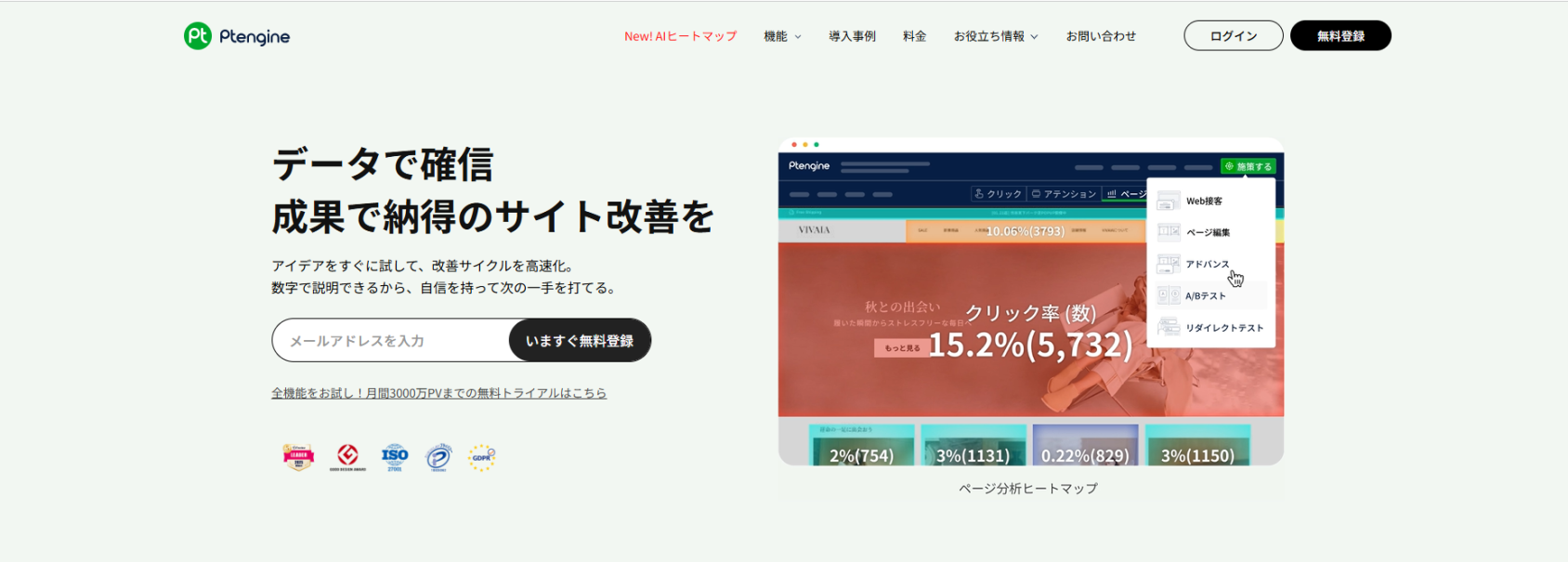 さらにGoogleアナリティクスなど従来のアクセス解析ツールには無い、ヒートマップ分析を得意としている点でも見逃せません。導入している企業数も増加中の、注目のツールです。