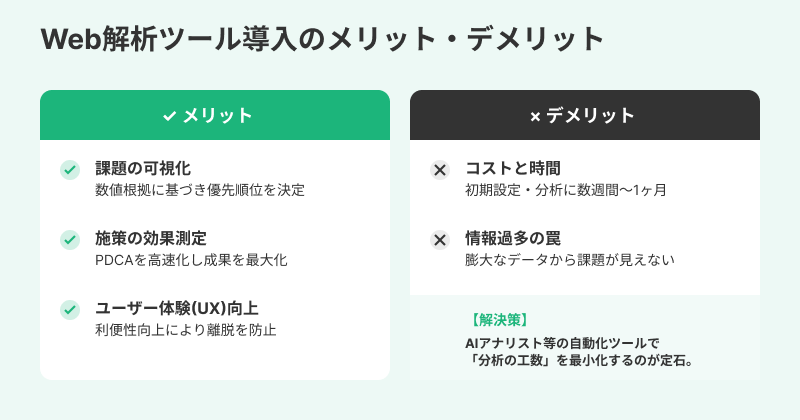 Web解析ツールの導入により、サイトの課題や改善点を把握できます。ここでは、導入のメリットについて解説します。