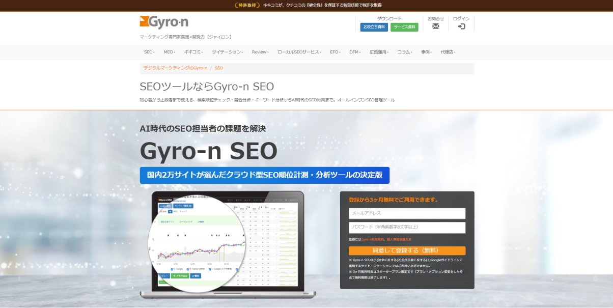 株式会社ユニヴァ・ジャイロンが提供するSEOツールです。検索順位のチェック、流入パフォーマンスの分析、テキスト分析などのほか、競合比較分析が可能です。競合比較分析では、指定した競合サイトのSEO順位を比較し、どのキーワードで負けているのかを把握できます。3か月の無料トライアル後に、有料となります。